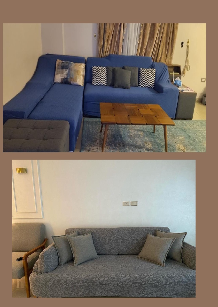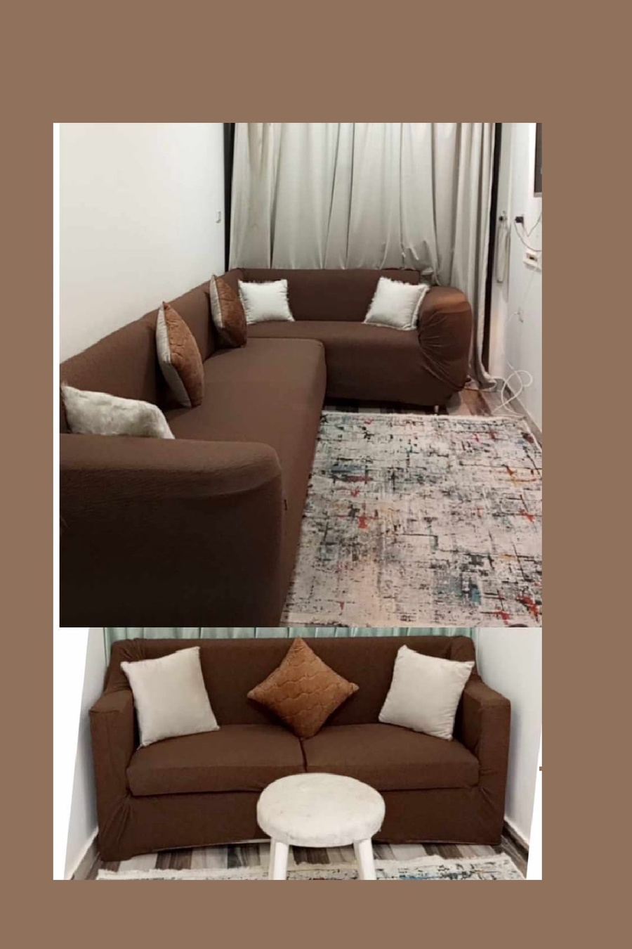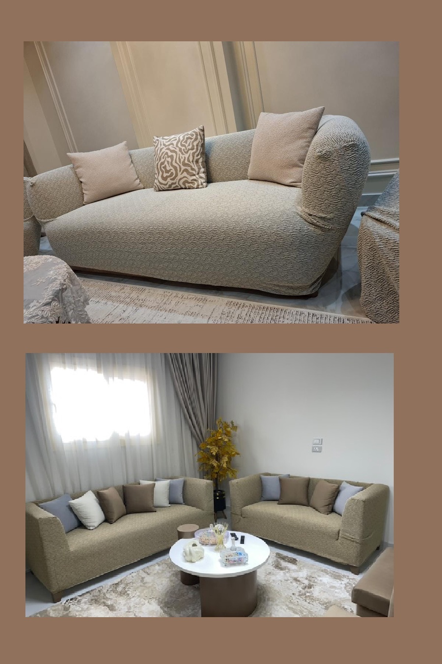 الطقم مناسب لتجديد الانتريه والصالون، خامة جاكار كتان عملية، مرنة، وسهلة التنظيف، مع تغطية كاملة وشكل شيك عصري.