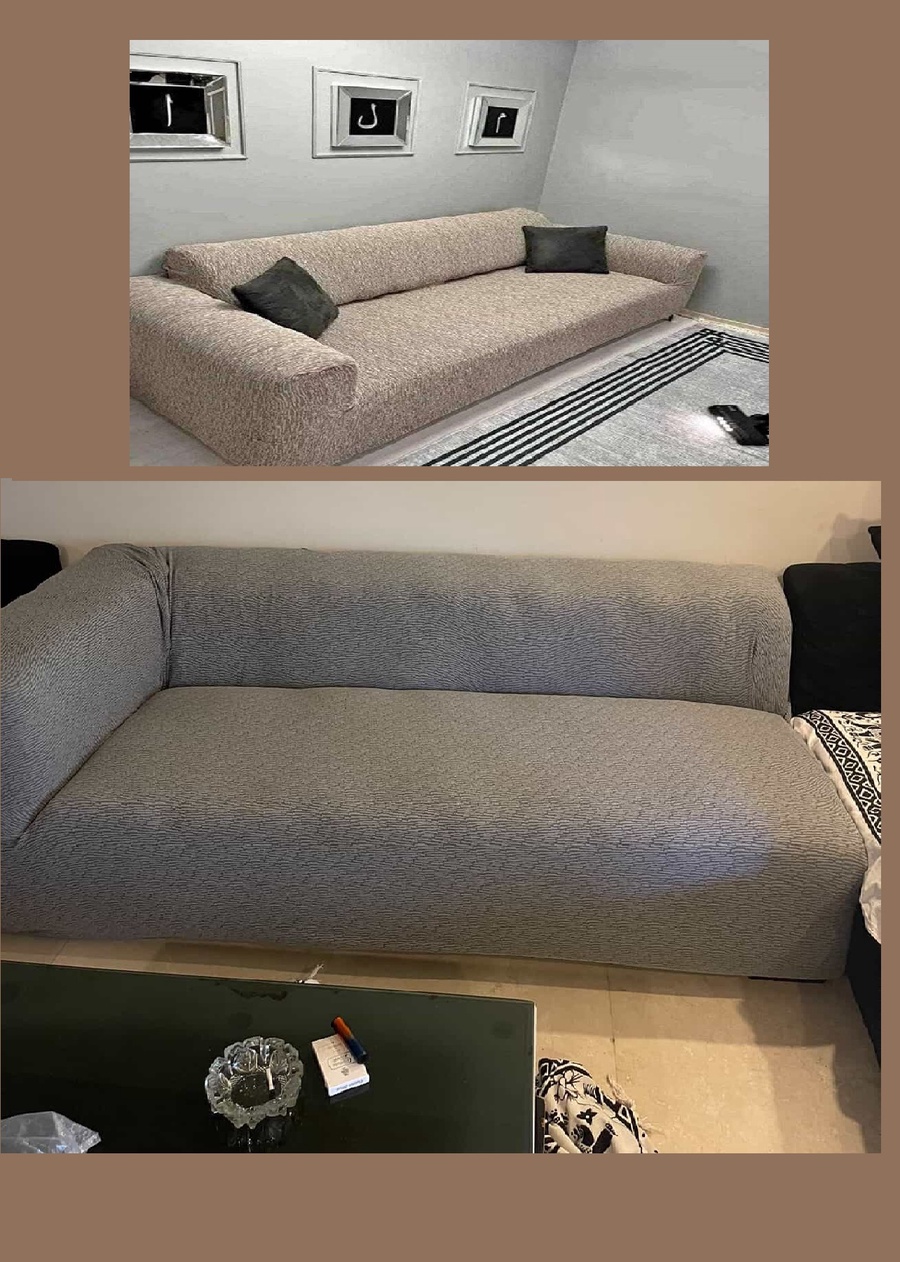 طقم جاكار كتان اسباني بخامة تقيلة ومرنة، بيغطي الكنب والكراسي بالكامل ويجدّد شكل الانتريه أو الصالون في ثانية، مع تثبيت ممتاز ومقاس جامبو مريح في الاستعمال اليومي.