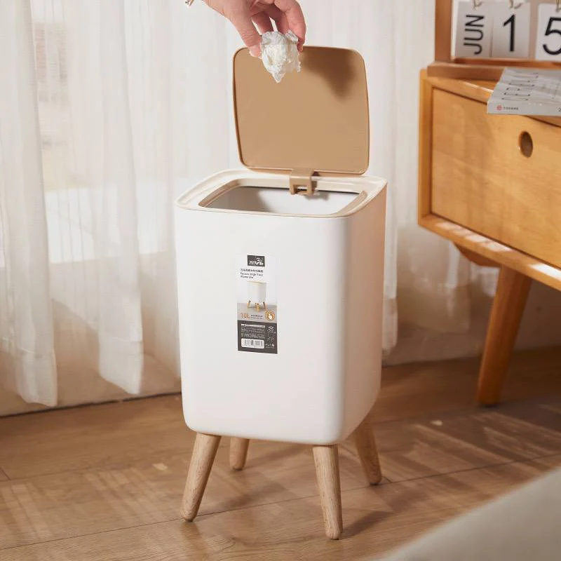 Elegant square touch trash bin made of high-quality plastic. Stylish design suitable for living
