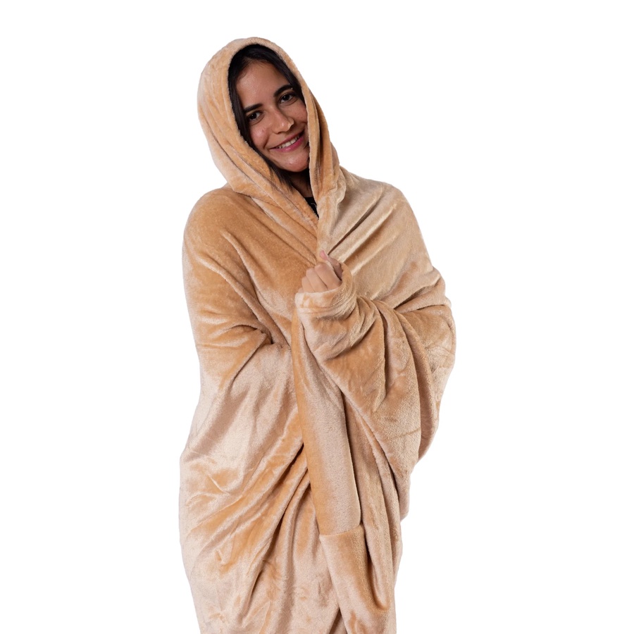 هودي وبطانية في قطعة واحدة، بخامة فرو ناعمة ودافئة. وان سيز يناسب كل المقاسات. مثالي للدفء والراحة.
